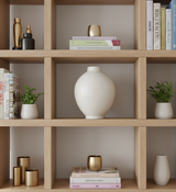 This handmade work of art boasts a shapely organic silhouette reminiscent of an archaeological discovery. Grand in scale and presence, this stunning earthenware vase is a statement maker and a designers pick! We love it placed on a large open bookshelf or entry foyer table.