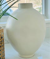 Handmade in Portugal, this vase’s creamy matte finish is versatile enough to be at home anywhere. Sculptural and beautiful in any setting, amidst classic, transitional, or urban decor, this vase features a gently undulated surface, enhancing its artistic organic appeal. Generously sized.