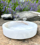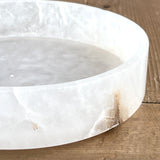 Ideally sized for vanities, bedside tables, baths and beyond, this exquisite round walled tray crafted from genuine alabaster is a natural beauty. A hand polished finish accentuates its natural variations, making each tray artistically unique. A stable base and thick vertical walls safely contain its contents in style. Artistry at home.