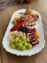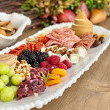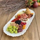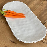 This stunning white oval serving tray, featuring Beatriz Ball's signature pearl rim edge detailing and brilliant lustre, is a coveted essential from the Alegria Collection of luxury melamine. Generously proportioned and boasting the look and substance of a ceramic piece, this beautiful long oval melamine platter is ideal for serving cheeses, sushi or charcuterie.