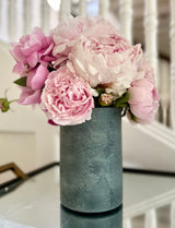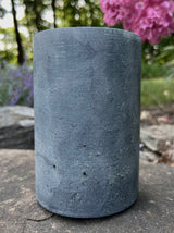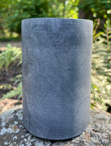 This genuine soapstone vase feature a simple cylinder shape in a substantial heavyweight composition with thick substantial walls. Note the beautiful grey hues with variations in movement, veining and inclusions which speak to the organic form and authenticity of natural soapstone. No two are alike. These sophisticated vases are designed to blend effortlessly into any décor style in any season.