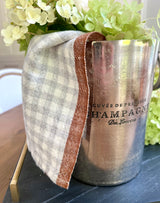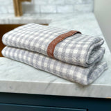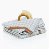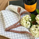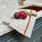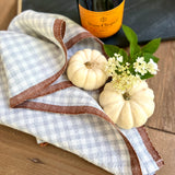 Gingham Linen Tea Towel in Blue Gray & Cinnamon