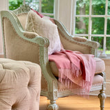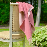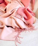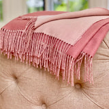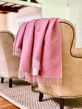 With its elegant two-tone design -- a soft ballet pink on one side and a deeper petal pink on the other -- this designer fringed throw will elevate any of your favorite chairs, sofas and resting spaces. A styling essential, perfect in any season! Wrap yourself and your fine furnishings up in luxurious perfection! Designer’s pick! By luxury maker, Cocún.