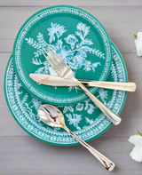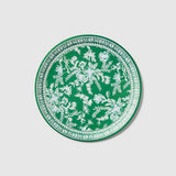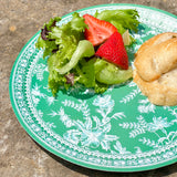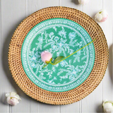 Channel the spirit of the French countryside at any gathering in any season with our new floral toile large paper plates in a verdant emerald green and white palette. A beautiful essential for creating lush Provencal garden vibes with disposable ease. Perfectly scaled for placing inside most charger plates too, making beautiful entertaining a breeze. See our coordinating salad plate and napkins too. Also available in pink and blue. By luxury paper goods maker, Coterie.