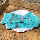 The easygoing stonewashed linen napkin collection by Caravan Home delivers full-bodied, richly draping squares in a fresh design boasting a simple contrasting  stripe and edge treatment. With a French bistro vibe, these simply elegant aqua blue napkins with charcoal grey and white accents will complete your table in any season with a nod to understated luxury and classic continental style.