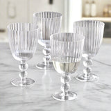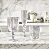 Ideal for serving wine, signature cocktails, or water, this is a beautiful glass barware set to be both admired and enjoyed, adding sophistication and visual interest in every season. Equally at home in the modern farmhouse and urban loft. See our coordinating champagne flutes and tumbler glasses too.