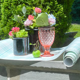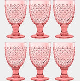 Shatter proof and break resistant, heavyweight acrylic saves the day in these luminous sophisticated pink textured footed hobnail glasses. Don’t you just love glasses on a pedestal? Bring on dining alfresco, outdoor cocktail parties and sipping by the pool with this worry free yet beautiful premium acrylic barware. Sturdy in hand and comfortable to grip, these shatterproof glasses will soon become a year round entertaining essential.