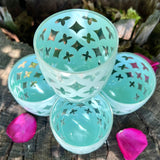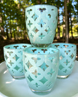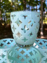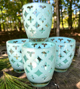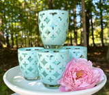 These beautiful outdoor glasses feature geometric pattern detailing interpreted in a soft mint julep hue. Delivering eye catching artsistry, these acrylic drinking tumblers add interest wherever they are placed. A Spring favorite!