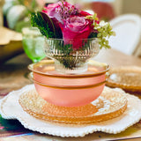 We fell instantly in love with these unique footed glass coupe vessels, each beautiful yet built for timeless function. We covet the smart design, exquisite sculptural aesthetic and infinite possibilities of this beautiful glassware.
