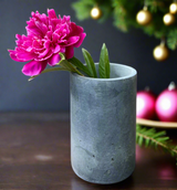 This genuine soapstone vase feature a simple cylinder shape in a substantial heavyweight composition with thick substantial walls. Note the beautiful grey hues with variations in movement, veining and inclusions which speak to the organic form and authenticity of natural soapstone. No two are alike. These sophisticated vases are designed to blend effortlessly into any décor style in any season.