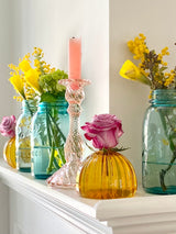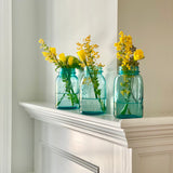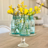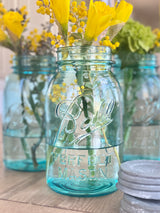 Indulge in a classic nod to the past with this set of 3 luminous aqua blue Ball mason jars. Make stunning display on the windowsill with or without flowers for exquisite all day long color!