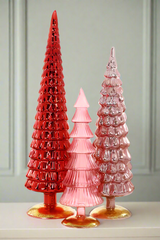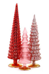 Glass Hue Trees in Red Set of 3 Grand Size