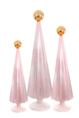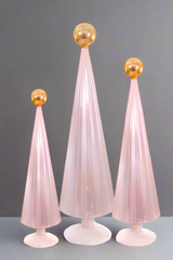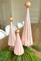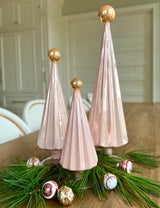 Pleated Glass Trees in Light Blush Pink Set of 3