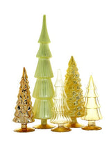 By designer Cody Foster, this stunning set of glass winter wonderland trees in modem yellow hues deliver artful sophistication to your seasonal decor. Formed of shapely glass and grand in scale, these luminous yellow beauties are showstoppers on the mantel, in the entry way, on the table and beyond. And they will keep the enchantment of winter going long after the holidays are over.
