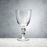 These shapely wine glasses are as beautiful as they are practical. Dishwasher safe, yet comfortable in hand with a shapely silhouette and captivating luminosity, these brilliantly clear glasses check all our boxes! Each handmade glass is a unique work of art, 100% mouth blown and hand etched, drawing from centuries old glass blowing techniques. Exquisite light catching ripple detailing paired with a sculptural ball stem creates texture and interest at the table or on the bar cart. Incredibly versatile, transitioning effortlessly to any setting.