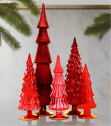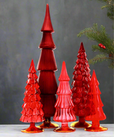 By designer Cody Foster, this stunning set of glass winter wonderland trees in classic red deliver artful sophistication to your seasonal decor. Formed of shapely glass and grand in scale, these luminous beauties are showstoppers on the mantel, in the entry way, on the table and beyond. And they will keep the enchantment of winter going long after the holidays are over.
