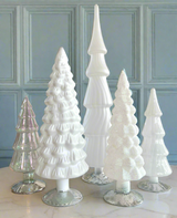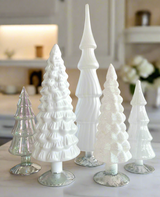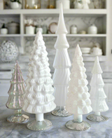 Treat yourself or someone you love to this treasure by designer Cody Foster. Our stunning set of glass winter wonderland trees in five exquisite white hues deliver artful sophistication to your seasonal decor. Formed of shapely glass and generously scaled, these luminous white beauties are showstoppers on the mantel, in the entry way, on the table and beyond. And in this versatile hue, they will keep the enchantment of winter going long after the holidays are over!