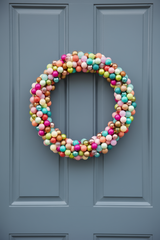 Enjoy this exquisite luminous wreath adorned with a vibrant mix of shimmering balls in festive youthful hues reminiscent of candy drops! This beautifully crafted wreath also showcases a variety of sheens for added dimensional interest. Ideally suited for hanging on doors, windows and beyond, this luxurious ball wreath delivers maximum impact well beyond the traditional holiday season. We love simply placed around a bowl on the tabletop too as statement décor at your festive celebrations. Instantly transforms any space. Modern and fresh yet nostalgic and youthful. Another stunning creation by designer, Cody Foster. Beautifully made with attention to detail, this wreath’s underside is trimmed in gold tinsel garland. Heirloom quality, this wreath makes a beautiful gift. With a nod to artistry at home, no two are exactly alike. Wreath hanging ribbon not included.
