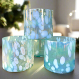 Mottled Glass Votive Holders in Aqua Blue Set of 4