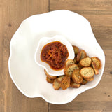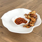 Dip dish can sit inside or outside of the larger chip bowl platter.
