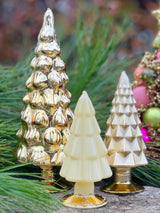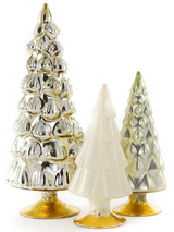 Treat yourself or someone you love to this luminous trio of ivory and gold glass trees by designer Cody Foster. Beautifully formed of art glass, these shimmering creamy beauties will shine bright on the mantel, windowsills, dining table and beyond. And they will keep the enchantment of winter going long after the holidays are over.