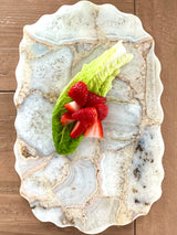 Agate is naturally formed in volcanic and metamorphic rock and was first used ornamentally in Ancient Greece. Enjoying a surge in popularity right now, agate is considered the design material of the season and can be seen in pieces ranging from decor to furniture, praised by designers and home enthusiasts alike for its unparalleled organic beauty. Enjoy your very own piece of agate in this carefully curated platter. Also see our coordinating white agate coasters. Artistry at home.