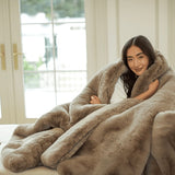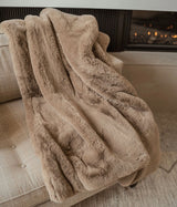 Luxe Faux Fur Throw Heavyweight Blanket in Mocha