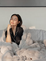 Not all fur is create equal! Carefully curated to meet our exacting standards for a plush soft feel in hand that we can’t get enough of, this irresistible throw is a piece you will treasure for years to come. Treat yourself or someone you love. A perfect gift to be both admired and enjoyed. Available in two sizes. Our oversized option is ideal for sharing and makes an ideal gift for the special couple! Knife edge finish. By luxury maker, Cozy Earth. Also available in mocha brown and ivory.