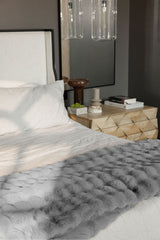 Luxe Faux Fur Bubble Throw Blanket in Gray Fox