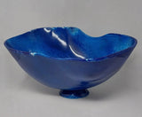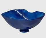 Beautiful, fresh, grand, sophisticated and artful are just a few words that come to mind when describing this stunning vibrant cobalt blue resin bowl. In an estate sized scale and boasting a sculptural silhouette with a sophisticated wavy edge treatment and luscious swirled white matte finish, this piece is formed of heavy weight luxury resin for an approachable yet elegant museum inspired vibe.