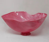 Beautiful, fresh, grand, sophisticated and artful are just a few words that come to mind when describing this stunning vibrant rose pink resin bowl. Boasting a sculptural silhouette with a sophisticated wavy edge treatment and luscious swirled white matte finish, this piece is formed of heavy weight luxury resin for approachable yet elegant museum inspired vibe.