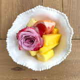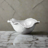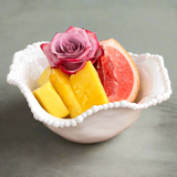 Perfect for serving small bites! This pretty Alegria bowl by Beatriz Ball is composed of luxury melamine enhanced with pearl edge detail. A great choice for serving snacks in style, its substance and weight gives it the appearance of a ceramic piece but it is in fact beautiful melamine, ideal for al fresco entertaining and beyond.