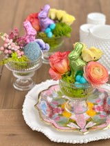 We fell instantly in love with these unique footed glass vessels, each inspired by the shapes and dazzle of crystal chandeliers. Offered in three styles, these shapely glasses on pedestals are built for timeless function. We covet their smart design, exquisite sculptural aesthetic and infinite possibilities!