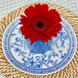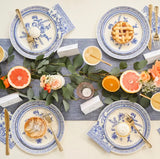 Channel the spirit of the French countryside at your next garden party with our floral toile large plates in a classic blue and white palette. A beautiful entertaining essential for creating romantic Provencal tabletop vibes with disposable ease. Perfectly scaled for placing inside most charger plates or atop other dinner plates too as shown, creating an interesting layer of color and pattern, making beautiful entertaining a breeze. See our coordinating toile salad plates and toile napkins. Also available in pink and green. By luxury paper goods maker, Coterie.