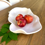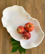 We love the wavy organic shape of the white melamine Nube Cloud Large Oval Platter by Beatriz Ball. With its sculptural form, soft impressions throughout its surface, gently curbed walls and matte porcelain like finish, the Nube Platter will be an artful go to for any occasion, grand or small. Whether in service at the dining table, or just resting atop the kitchen island, it exudes timeless elegance and stylish good taste.