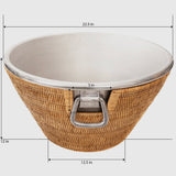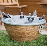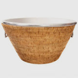 A best seller, beloved by entertaining enthusiasts, this extra sturdy rattan handmade basket is an endlessly versatile beauty in a large workable size, complete with removable insulated aluminum liner. With extra deep side walls and comfortable aluminum carrying handles this generously sized and masterfully constructed rattan and aluminum beverage tub takes your beverage service to a whole new level.