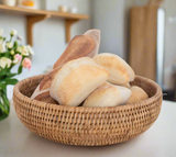 Beloved by designers and home enthusiasts alike, rattan is showcased beautifully in this handmade round basket. An endlessly versatile beauty in a most workable shape and size. With deep side walls and a contoured shape this masterfully constructed rattan basket takes your serving to a whole new level.