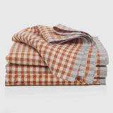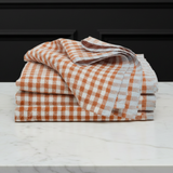 We fell instantly for these ultra luxurious premium robust linen gingham napkins with their beautifully rich cognac hue with a soft modern blue gray contrasting edge detaill. Crafted from a weighty full-bodied linen, these luxuriously lofty napkins by Caravan deliver a fresh and comfortably welcoming vibe to any table setting. Pleasing to the eye and indulgent to the touch!