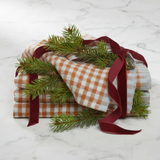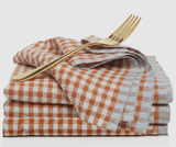 Gingham Linen Napkins in Cognac and Blue Set of 4 Just Reduced!