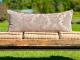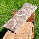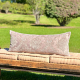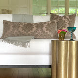 We love the feel and vibe of our cut chenille damask extra long lumbar pillow in soft hues of lavender and pewter with hints of silver sage and misty blue. Sophisticated and elegant, this beauty mixes well with others but is also up to the task of being the only pillow on the living room sofa, entryway bench or window seat. Gorgeous as the front pillow of your king or queen sized bed or as the only pillow on your sofa.