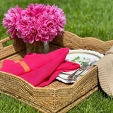 These generously sized stonewashed linens also feel inviting yet substantial to the touch, imparting an elevated look and feel to any occasion, grand or small. Each napkin is yarn dyed, handmade and handwashed, resulting in a supremely soft texture that will stand the test of time. A fresh complement to our Beatriz Ball melamine collection. Rattan tray shown is available in the rattan collection.