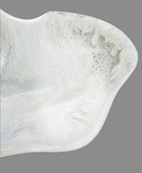 Beautiful, fresh, sophisticated and artful are just a few words that come to mind when describing this stunning white resin bowl. Boasting a sculptural silhouette with a sophisticated wavy edge treatment and luscious swirled organic white matte finish, this piece is formed of heavy weight luxury resin for approachable yet elegant refinement. A beautiful addition to your layered white spaces and beyond!