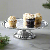 This stunning polished metal Pearl Pedestal Platter features a beaded detail design and lush polished finish that will elevate any culinary presentation. Its beauty is matched only by its functionality, delivered in an oven annd freezer friendly aluminum alloy.