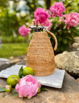 Keep your beverages warm or cool for hours in this beautiful insulated rattan carafe featuring an inner stainless steel thermos. A go to entertaining piece that you will reach for over and over again, this handmade carafe in tightly woven rattan is as practical as it is beautiful. We especially enjoy this classic rattan texture paired with the smooth contrast of our Beatriz Ball white melamine collection.
