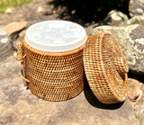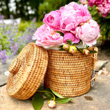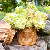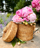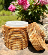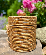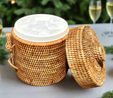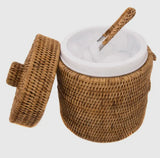 A best seller, this lidded ice bucket in sturdy handmade rattan is fully insulated to keep ice on hand for hours!