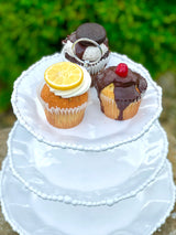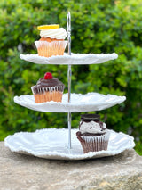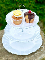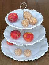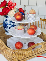 This luminous triple tiered server from Beatriz Ball's Alegria Collection offers a statement focal point place from which to serve light bites, desserts and so much more! With signature pearl rim detailing, three generous serving areas in graduated sizes are joined by a detailed silver-toned metal riser and topped by a loop handle. An elegant way to present any culinary creation and a beautiful gift. With a brilliant white lustre finish and generous-proportions, this beautiful melamine tiered server is a welcome complement to any serving table, for any occasion. Perfectly mimicking a ceramic piece, this pretty server is formed of luxury melamine, ideally suited for use indoors and out. Casual, easy elegance for every day. Quickly disassembles for ease of storage.