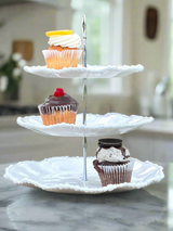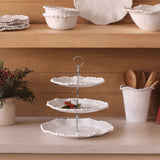 This luminous triple tiered server from Beatriz Ball's Alegria Collection offers a statement focal point place from which to serve light bites, desserts and so much more! With signature pearl rim detailing, three generous serving areas in graduated sizes are joined by a detailed silver-toned metal riser and topped by a loop handle. An elegant way to present any culinary creation and a beautiful gift. With a brilliant white lustre finish and generous-proportions, this beautiful melamine tiered server is a welcome complement to any serving table, for any occasion. Perfectly mimicking a ceramic piece, this pretty server is formed of luxury melamine, ideally suited for use indoors and out. Casual, easy elegance for every day. Quickly disassembles for ease of storage.