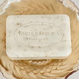 Enjoy this rich, luxurious and generous bar of White Gardenia soap by Pre de Provence, featuring gently exfoliating properties in a lush gardenia fragrance reminiscent of a walk through botanical gardens in Hawaii. This rich, luxurious and generous bar of Gardenia gently exfoliating soap by Pre de Provence features a beautiful gardenia floral fragrance that channels the sweet, silky, smooth essence of this pure white flower. Create your own sublime sensory experience and oasis of serenity with one of Pre de Provence’s most popular scents.