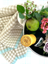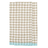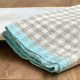 Gingham Linen Tea Towel in Sand & Aqua Blue