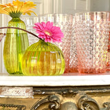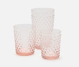 In hand blown splendor, these dishwasher safe statement making hobnail textured highball drinking glasses are a visual treat! Delight in these beautifully made artisan vessels in a soft blush pink reminiscent of vintage glass. A beautiful addition to your seasonless table and beyond, these are everyday showstoppers simply peering out from your kitchen shelving. Stunning luminous handblown glass to have and hold onto. By Blue Pheasant.